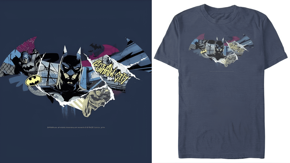 DC COMICS Men’s Batman Shield Logo Classic Hero Collage T-Shirt