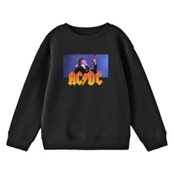AC/DC ACDC Logo And Angus Young Youth Black Crew Neck Sweatshirt