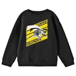 DC COMICS Batman Caped Crusader Line Art Youth Black Crew Neck Sweatshirt