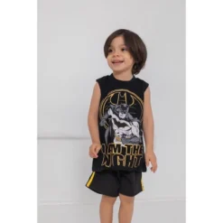 DC Comics Justice League Batman T-Shirt Tank Top And Mesh Shorts 3 Piece Outfit Set Toddler
