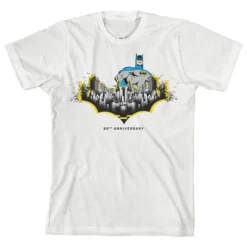 DC COMICS Batman Gotham City Bat 80th Anniversary White T-shirt Toddler Boy To Youth Boy