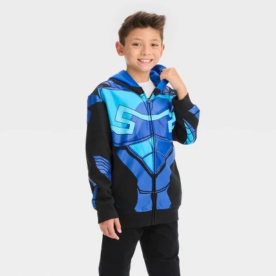 Add some superhero flair to your child’s cool-weather wardrobe with this DC Comics Blue Beetle Zip-Up Sweatshirt. Designed like Blue Beetle’s armor in blue and black, this regular-fit sweatshirt is made of a midweight cotton blend to keep your young DC fan warm and toasty. It boasts ribbed trim on the long sleeves and below-waist hem for a neat look, along with an attached hood featuring an eye mask design on the forehead flap. Plus, the full-length zippered front makes it easy to layer over tops and bottoms.