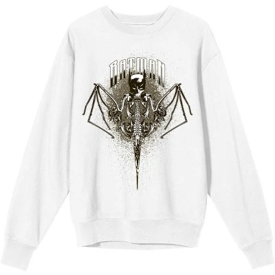 DC COMICS Batman Bat Mask With Bat Wings Men’s White Crew Neck Long Sleeve Graphic Sweatshirt