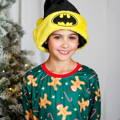 Elevate your holiday look with this beautiful Christmas hat featuring the Batman logo. Beautiful applique and embroidered materials in bright vibrant colors. A must have for Batman fans. Hat made of Polyester. 16″ size perfect for anyone on your list, or keep it for yourself. High quality materials and construction.