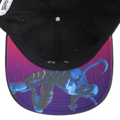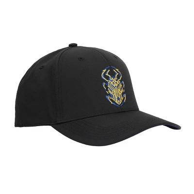 Embrace the superhero within with this men’s black Blue Beetle elite flex precurve snapback hat. This dynamic hat features the iconic scarab logo of the superhero and a striking image of the hero on a purple background on the bill’s underside. Made with stretch mock acrylic, the hat is adjustable for a perfect fit. Hand wash with cold water and lay flat to dry to maintain its brilliance. Officially licensed, this hat is a must-have for Blue Beetle fans and superhero enthusiasts.