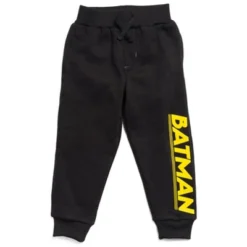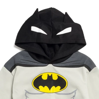 Come join Batman and all the DC Comics superheroes on their exciting comic book adventures! Dressed in this Batman Hoodie & Pants your kid will team up with the Dark Knight and his sidekick Robin to protect Gotham City from villains like the Joker, the Riddler, and Catwoman. Your little hero will look so cool and stylish in this Batman Justice League Fleece Pullover Hoodie and Pants Outfit Set.