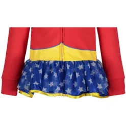Wonder Woman would be proud of any little girl she sees wearing this hoodie. With a bright blue tulle skirt printed with stars and the iconic Wonder Woman logo, this hoodie will quickly become a favorite.