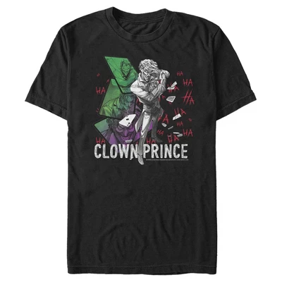 - Strut your stuff with this stylish new Men’s Graphic T-Shirt that is perfect for every occasion! Featuring your favorite villains like The Joker in black and white with “Clown Prince” printed below.